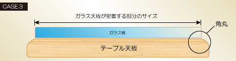 ガラスと天板面が密着する部分のサイズで使用して頂くことをお勧めしています